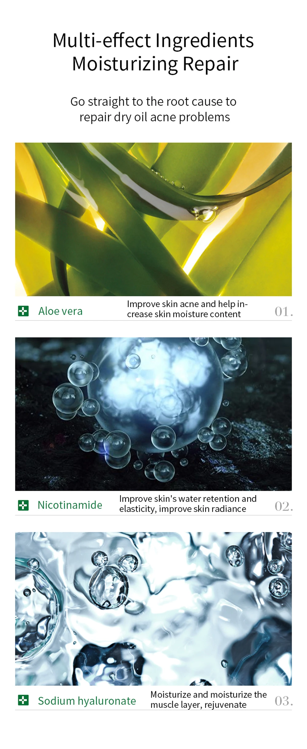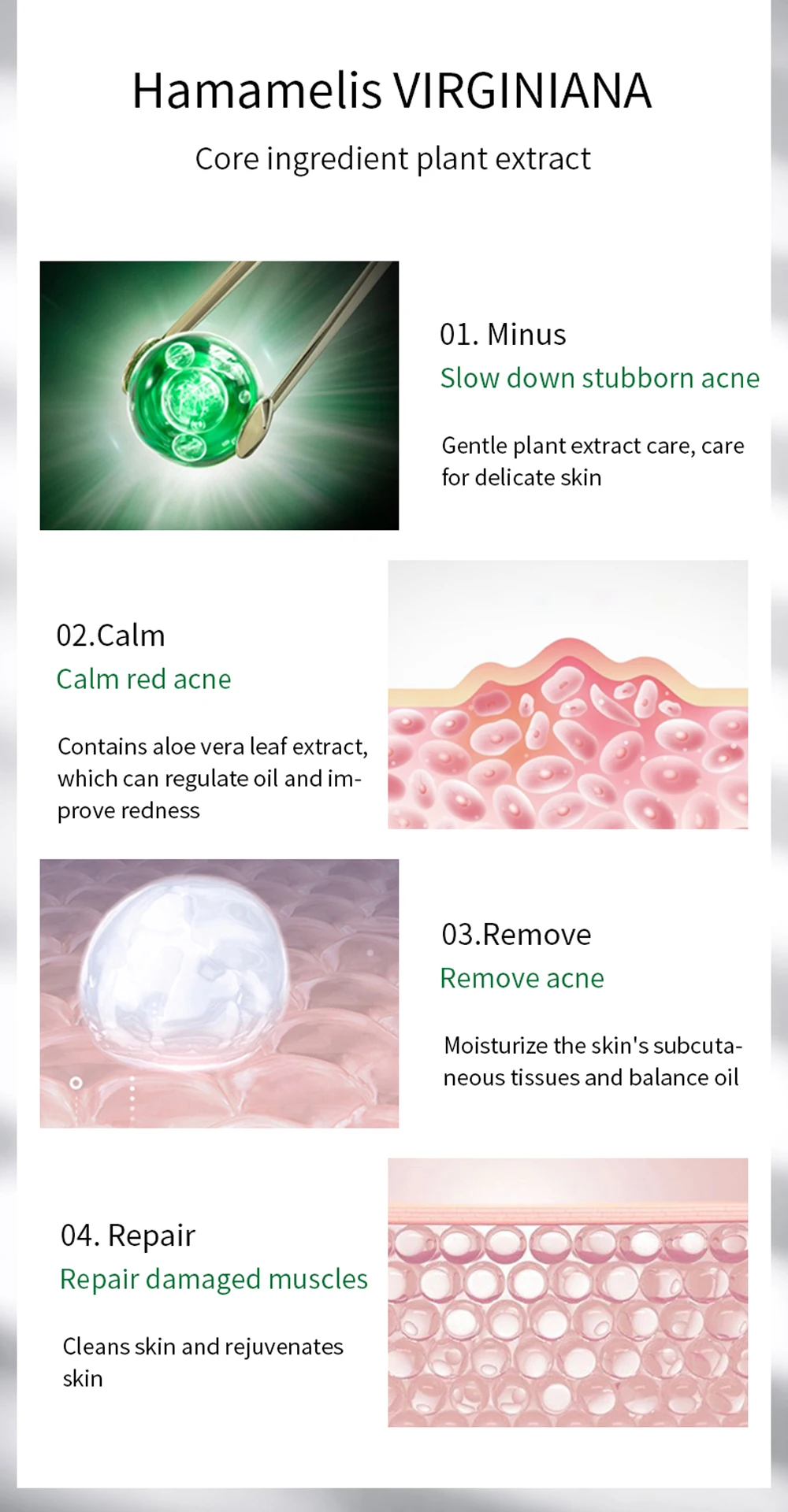 Помогает коже улучшить грубые прыщи и удалить акне ▼ Очищения от угревой сыпи Улучшает кожу, подверженную акне, делает кожу нежной и сияющей. ▼ Глубокое увлажнение Увлажняет и формирует защитную пленку на поверхности кожи ▼ Баланс жирной кожи Растворите лишнее масло, чтобы сделать кожу свежей и полупрозрачной