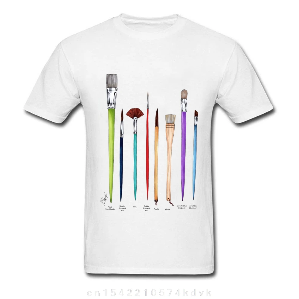 Футболка мужская с принтом кистей в стиле хип-хоп, серый топ с художественным дизайном, хлопковая ткань