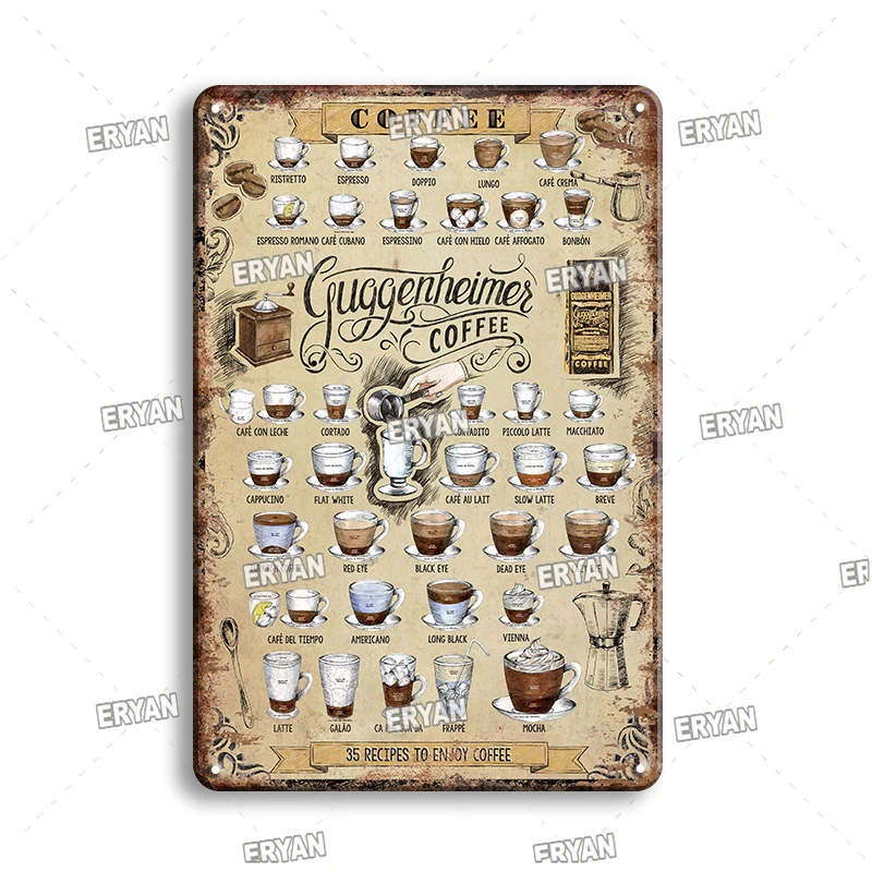 Металлический постер в виде меню кофе, жестяная вывеска, винтажная ...
