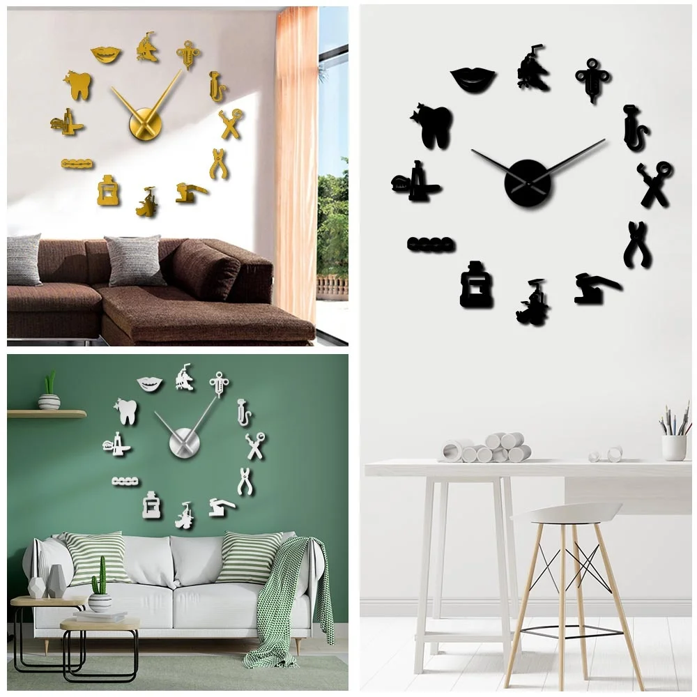 Стоматологические инструменты, безрамные 3D настенные часы, стоматологические врачебные клиники, стоматологические больницы, Ортодонтическая комната, художественные декоративные часы