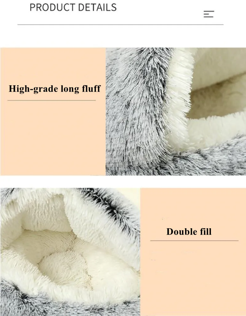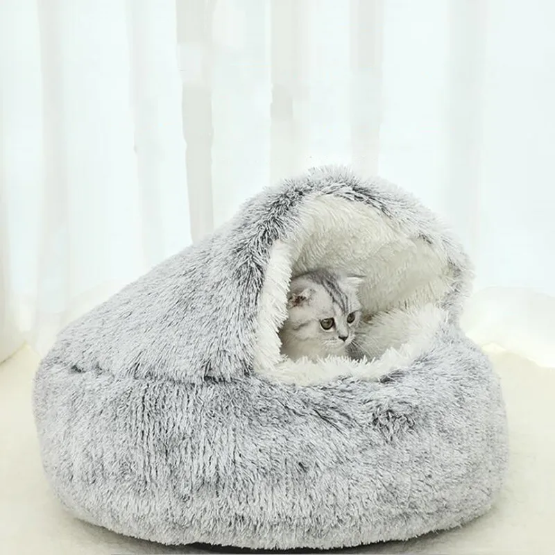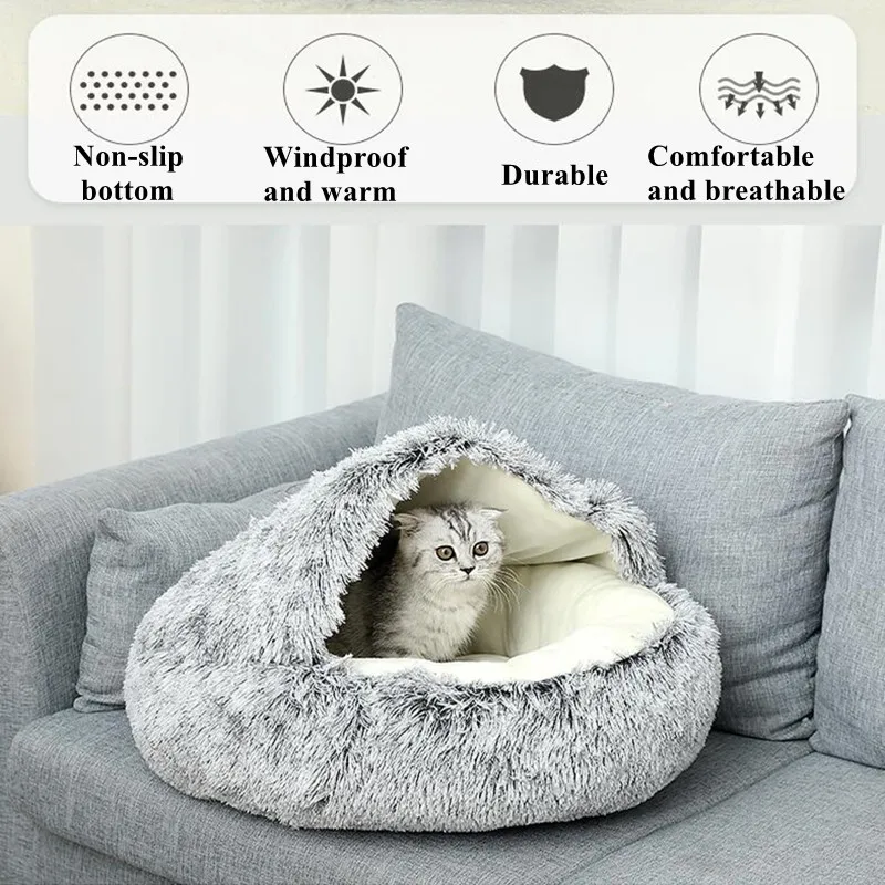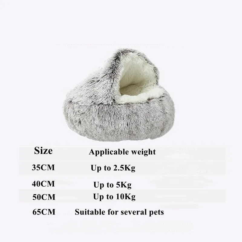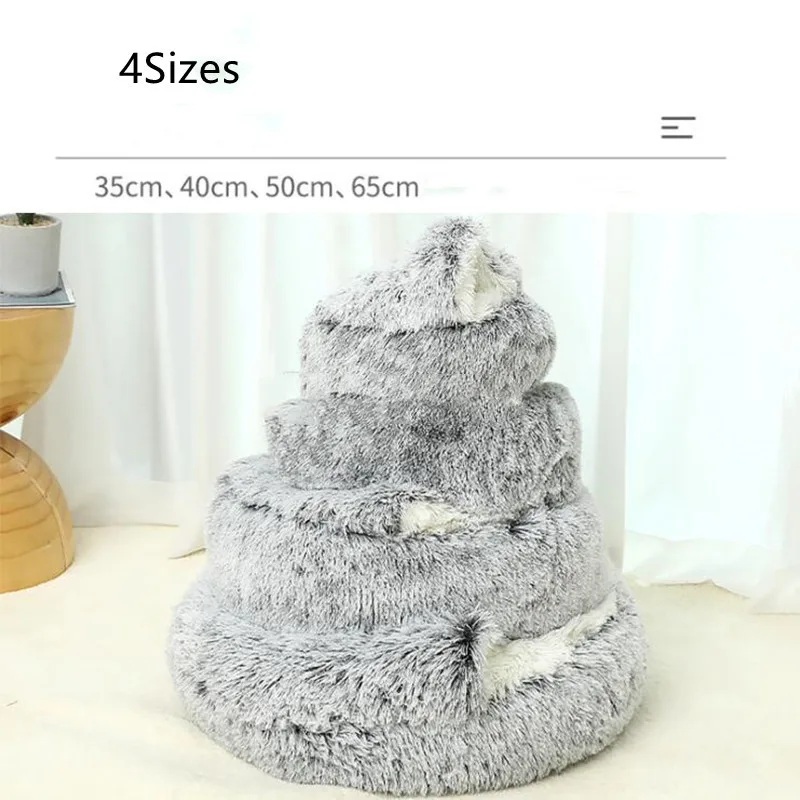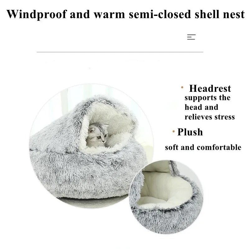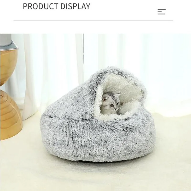 Зимняя длинная плюшевая подушка для домашнего питомца, рабочая круглая подушка, домик для кошки 2 в 1, теплая корзина для кошек, полузакрытая сумка для щенка, маленькая кошка