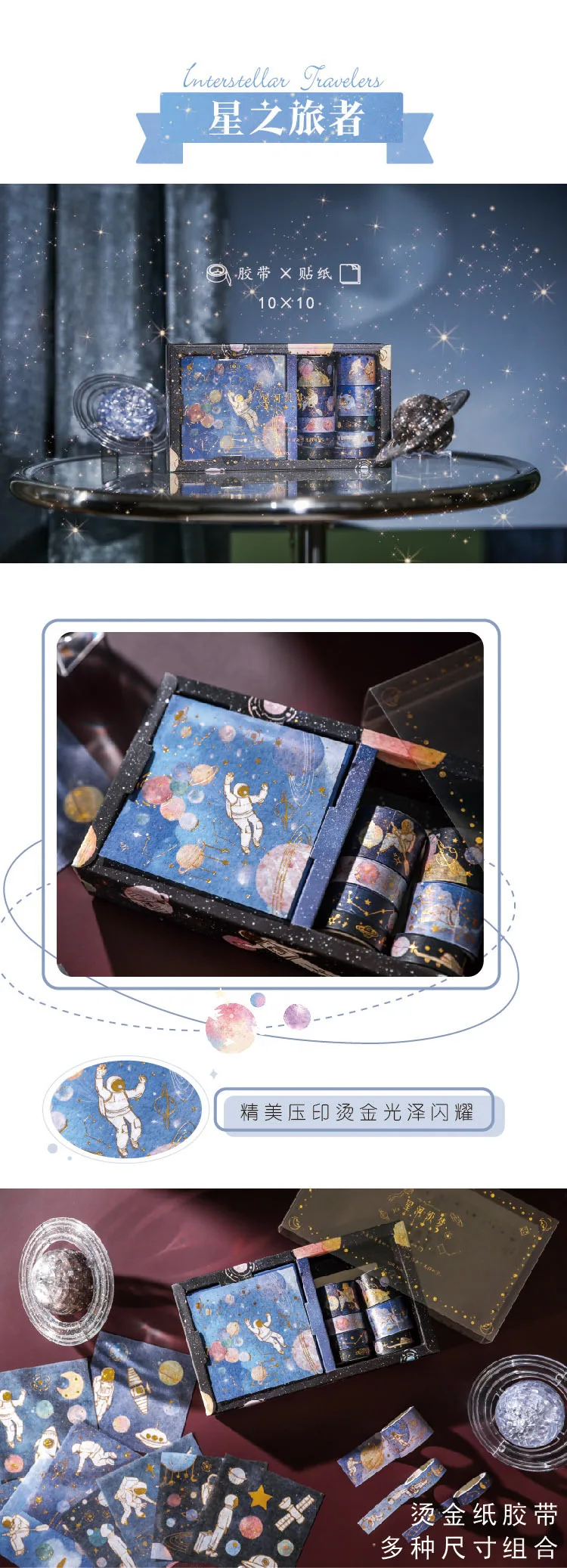 Космические самодельные наклейки из фольги 20 шт., Золотые декоративные Вселенная, звезды путешественника, Набор наклеек для скрапбукинга, подарочной упаковки