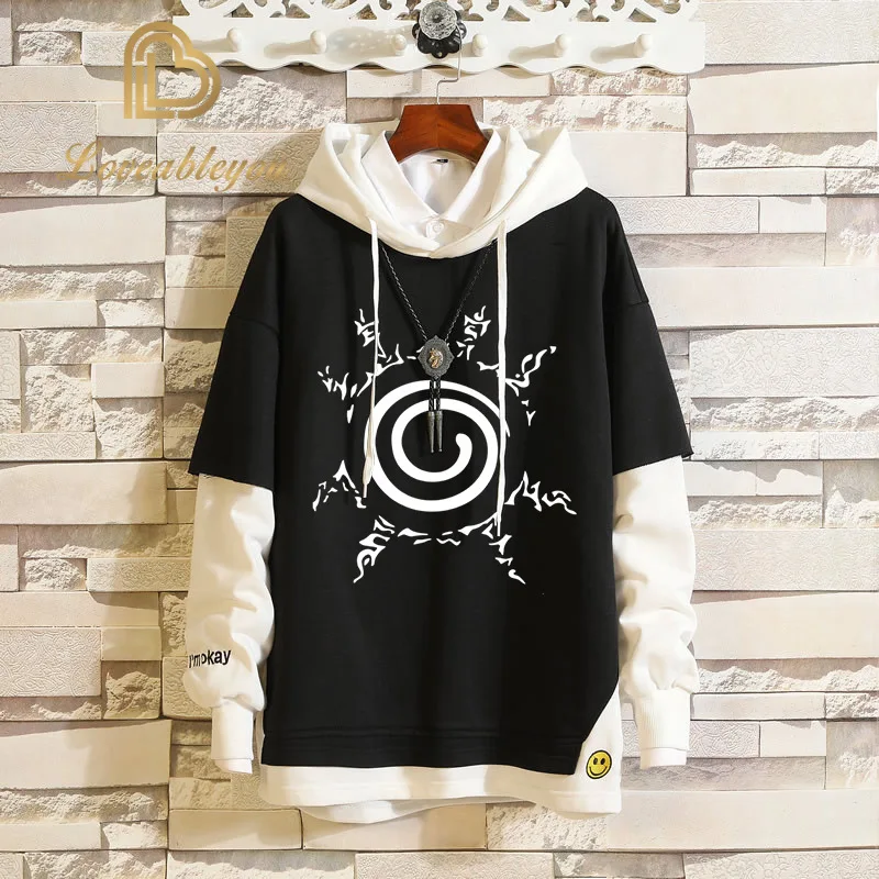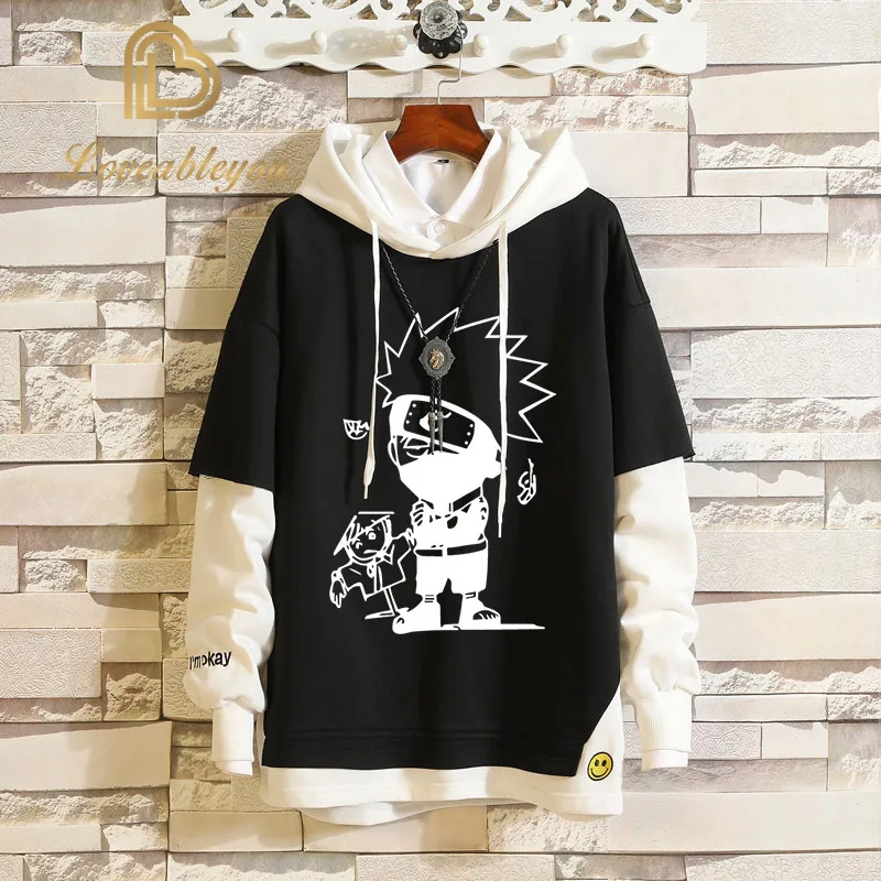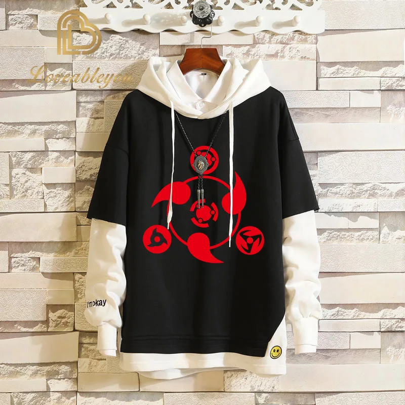 Новинка 2021, распродажа, Двухцветная Толстовка с капюшоном, Модный пуловер с принтом Акацуки, свитшот, большие размеры, аниме, мужские и женские толстовки