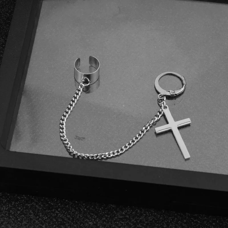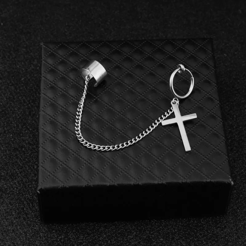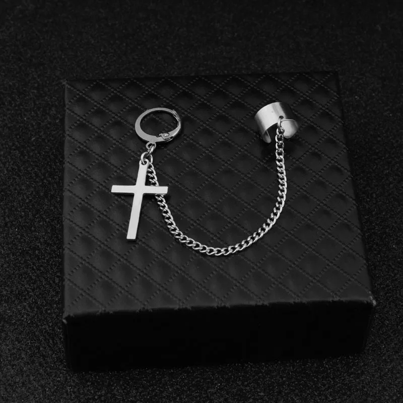Ушные манжеты из нержавеющей стали подвеска на цепочке серьги крест...