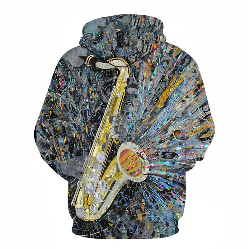 Рок музыка саксофон гитара толстовка с пламенем 3D Толстовка Мужска...