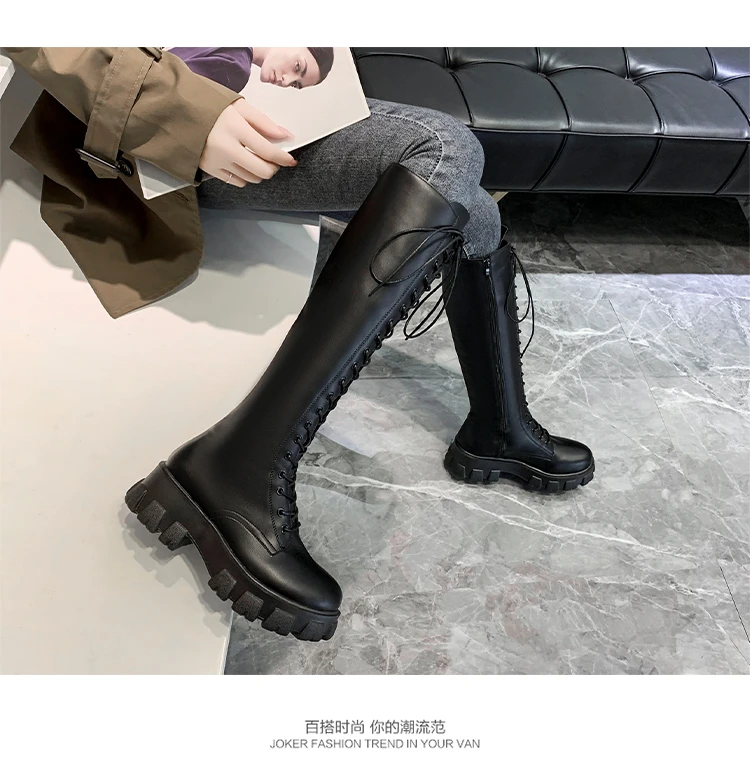 Женские высокие сапоги до колена на массивной подошве, зимние готич...