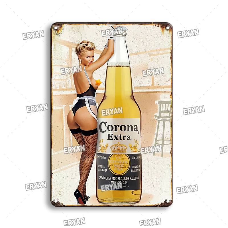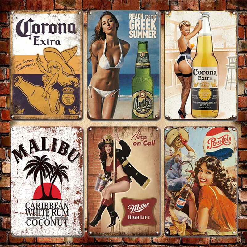 Винтажная привлекательная металлическая жестяная вывеска в виде дев...