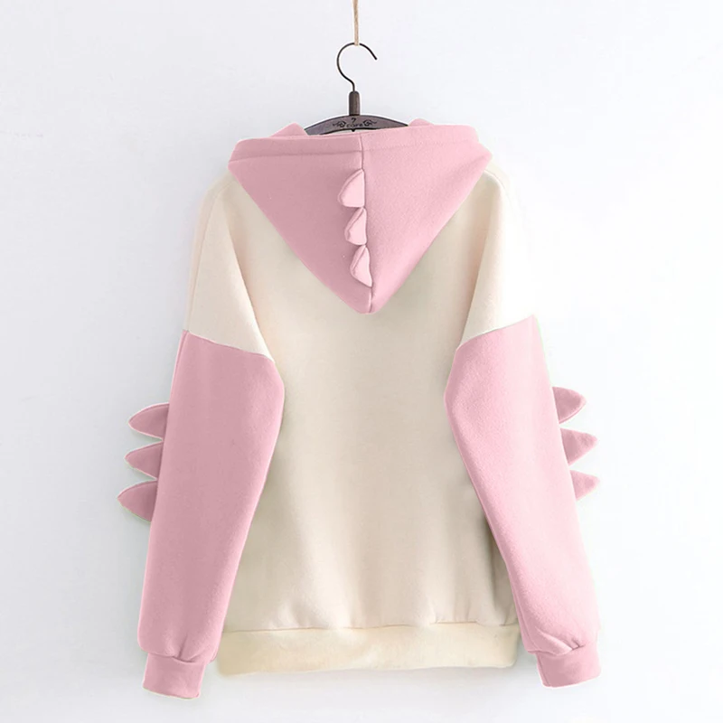 Осенние теплые толстовки с милым принтом динозавра, женские милые толстовки, повседневные свободные женские толстовки, корейская модная одежда, новинка
