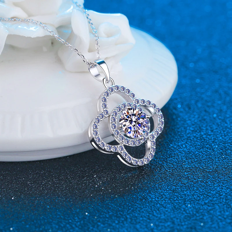 Moissanite, бриллиантовые ожерелья для женщин, Платиновое покрытие, Стерлинговое Серебро, кулон в виде цветка, ожерелье для женщин, день рождения, День матери