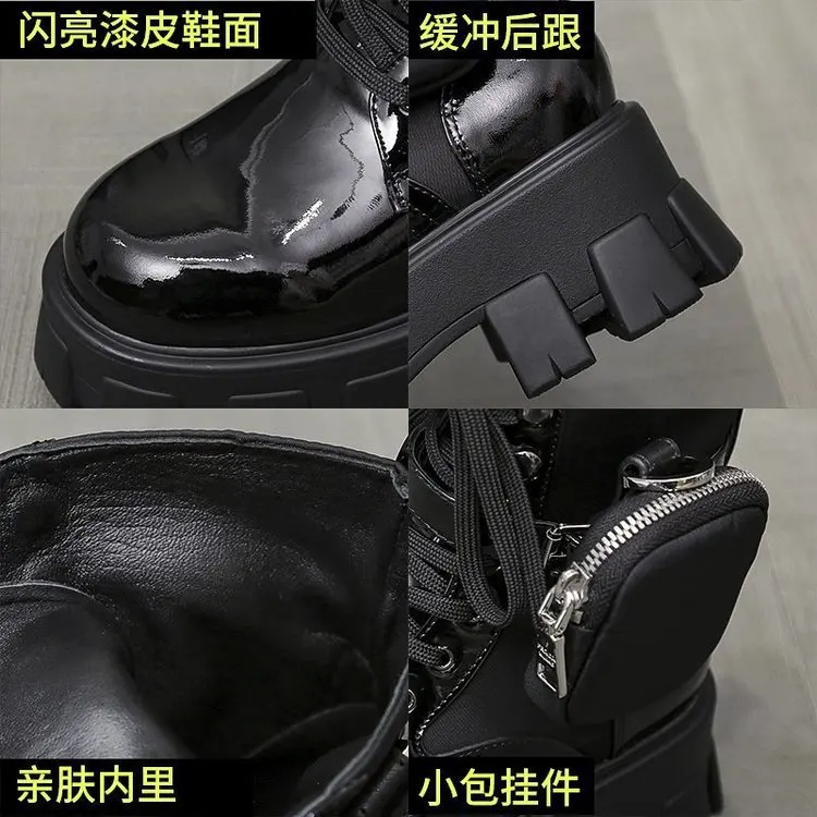 Ботинки женские из лакированной кожи, на платформе 6 см, с сумкой и...