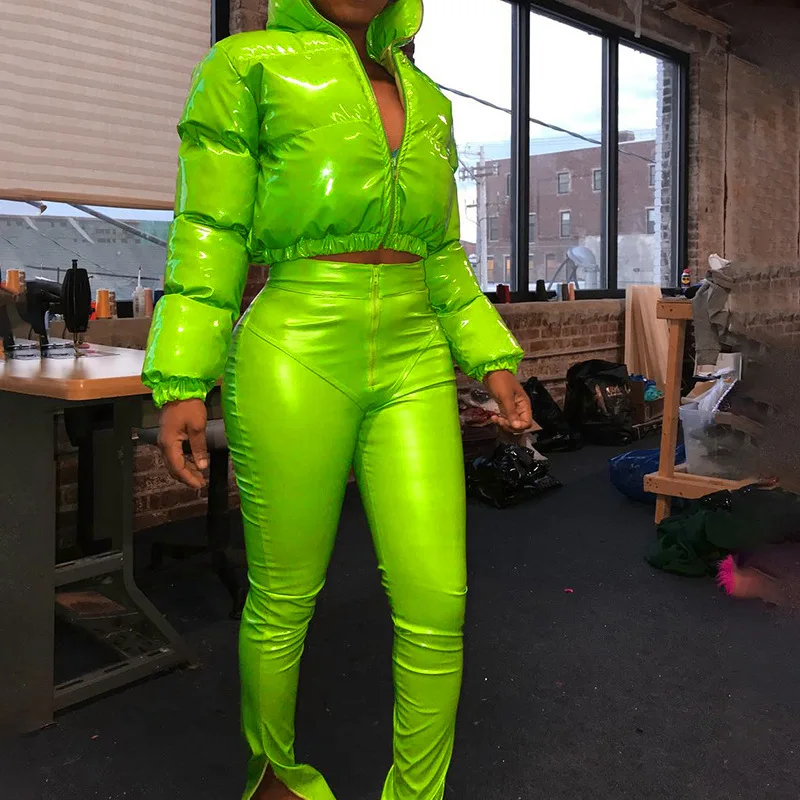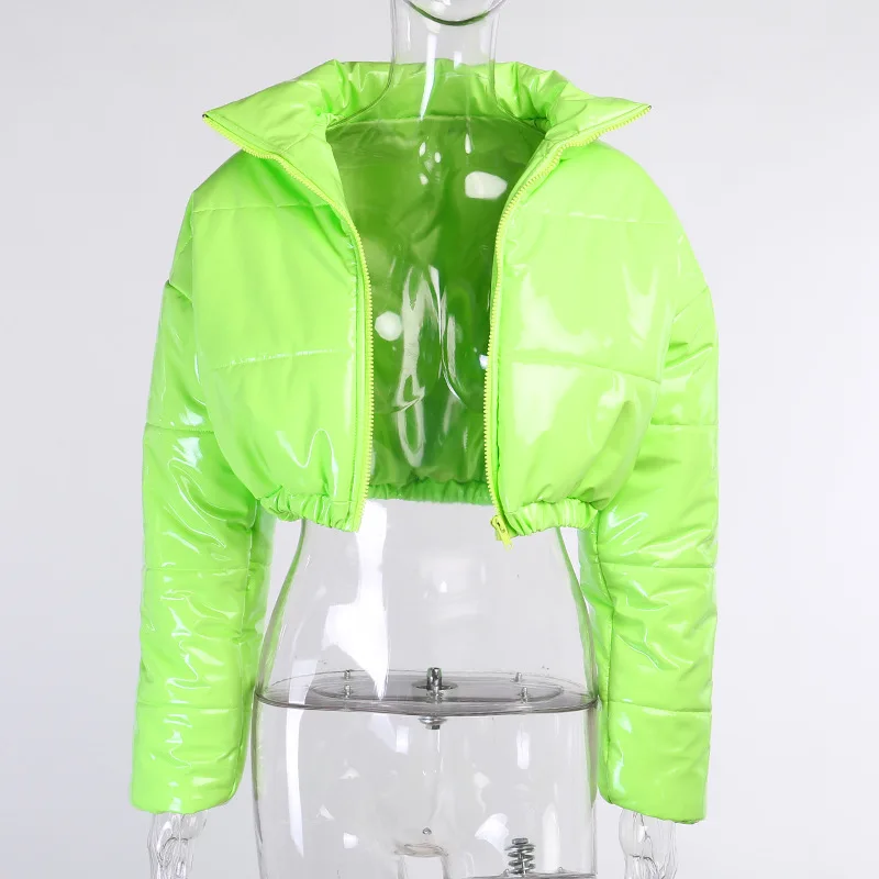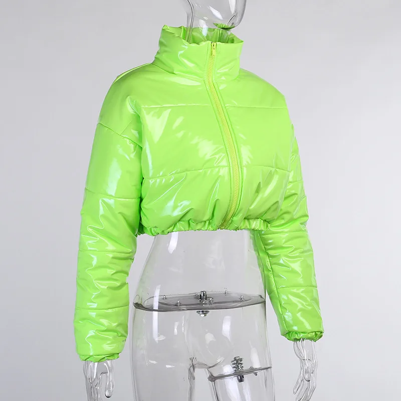 Зимняя женская яркая куртка из искусственной кожи, Женская куртка с...