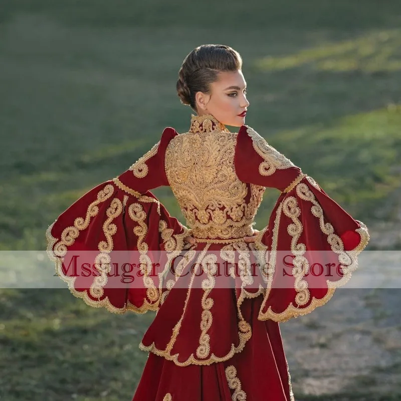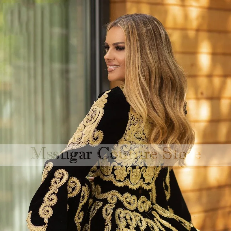 Традиционное бархатное платье для выпускного вечера, вечерние платья с расклешенными рукавами и аппликацией, с разрезом, албанское платье, 2021