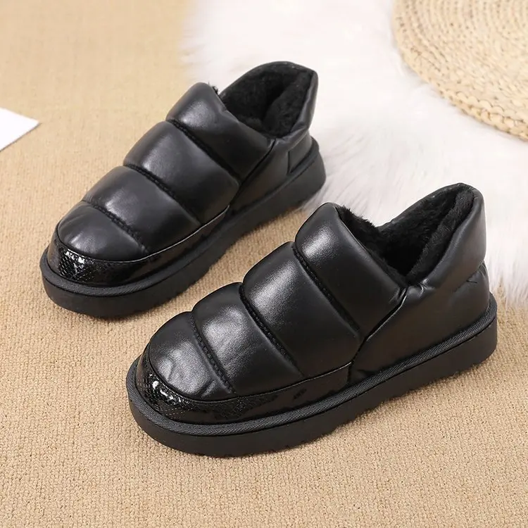 Женские зимние ботильоны на меху, теплые водонепроницаемые ботинки из искусственной кожи на плоской подошве для мужчин и женщин, удобная домашняя обувь для пар, женские ботинки