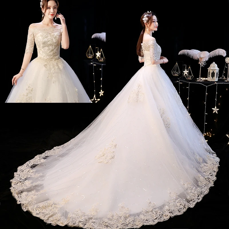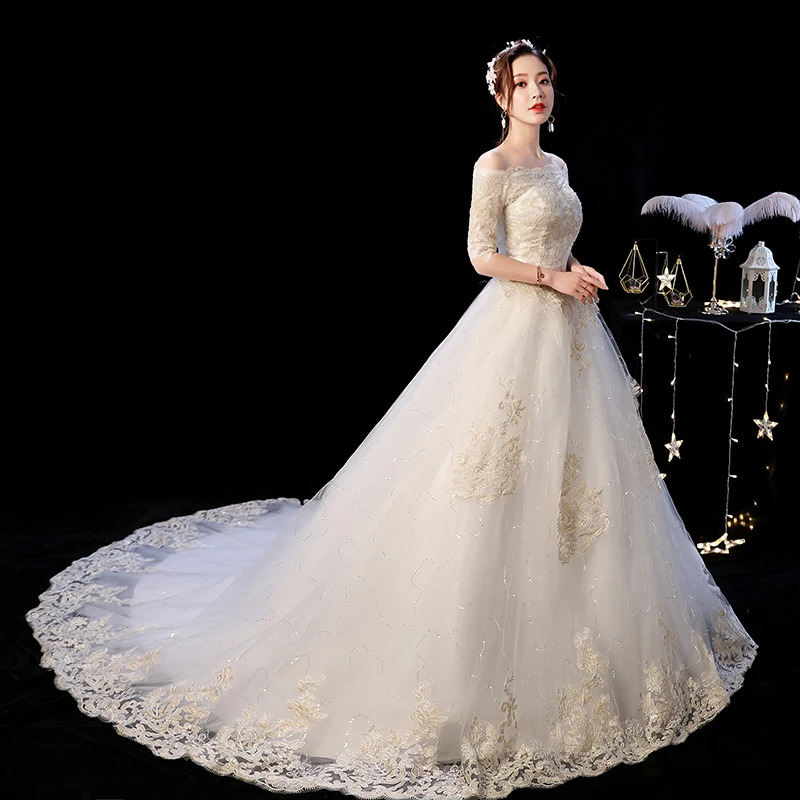 Новое поступление 2021 2022, китайское свадебное платье, кружевное свадебное платье с длинным шлейфом и вышивкой, цельнокроеное платье для невесты