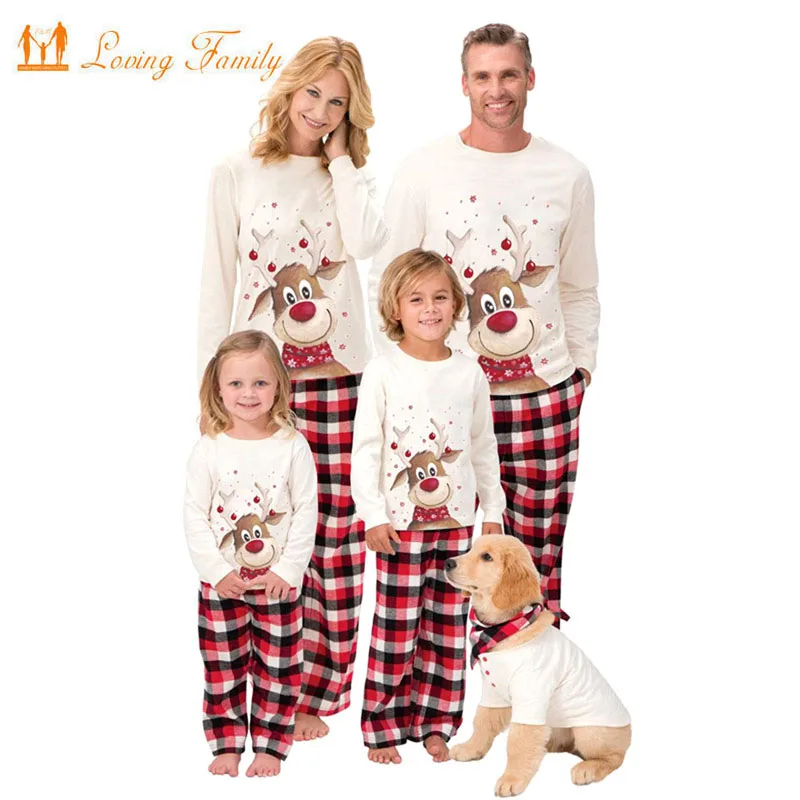 Семейный Рождественский пижамный комплект с принтом оленя, для взро...