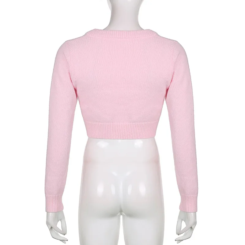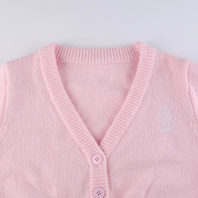 Вязаный шерстяной однобортный свитер с вышивкой и V-образным вырезом