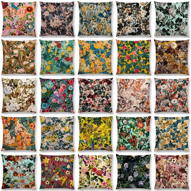 Чехол для подушки с двойным принтом, льняная наволочка с изображением природных цветов, Листьев, растительных тропических джунглей, украшение для дома и автомобиля, диванная подушка