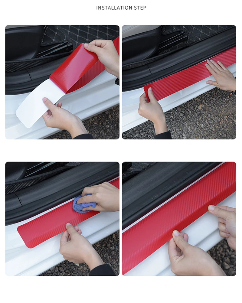 Характеристика:-Материал: углеродное волокно-Изготовлен из высококачественного материала, наклейка долговечна и долговечна.-Идеально подходит для украшения автомобильных дверей-Может эффективно защитить край наружной пороговой пластины, поглощает удары и предотвращает появление царапин.-Можно покрыть существующие царапины, сделать ваш автомобиль более красивым.-Lnstallation очень легко, он имеет клей на задней части, когда вы устанавливаете наклейку (Вы можете посыпать немного воды на задней части наклейки, то выМожно свободно перемещать наклейки, чтобы избежать неправильного положения).-Декоративная и защитная Накладка на порог вашего автомобиля-Размер: передняя дверь: 60 см * 7 см; Задняя дверь: 40 см * 7 см, пожалуйста, подтвердите, что размер подходит для вашего автомобиля или нетСоветы по установке:1. Убедитесь, что поверхность, на которую наносится продукт, чистая, сухая и не содержит пыли, жира и воска.2. Определение точного местоположения продукта3. Снимите защитную пленку с клея, тщательно выровняйте, а затем плотно нажмите, чтобы обеспечить правильное сцепление4. Не перемещайте изделие или не мойте машину в течение 24 часов после установкиПосылка:4 шт. наклейки в комплекте (включая 2 шт. Крышка для передней двери, 2 шт. крышка для задней двери)