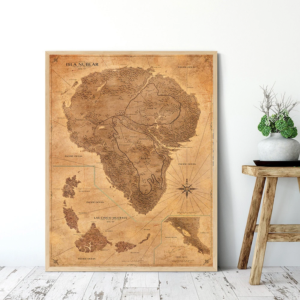 Sepia Винтаж Парк Юрского периода карта постер динозавр Затерянный мир стены искусства холст печать картины картина для комнаты домашний декор