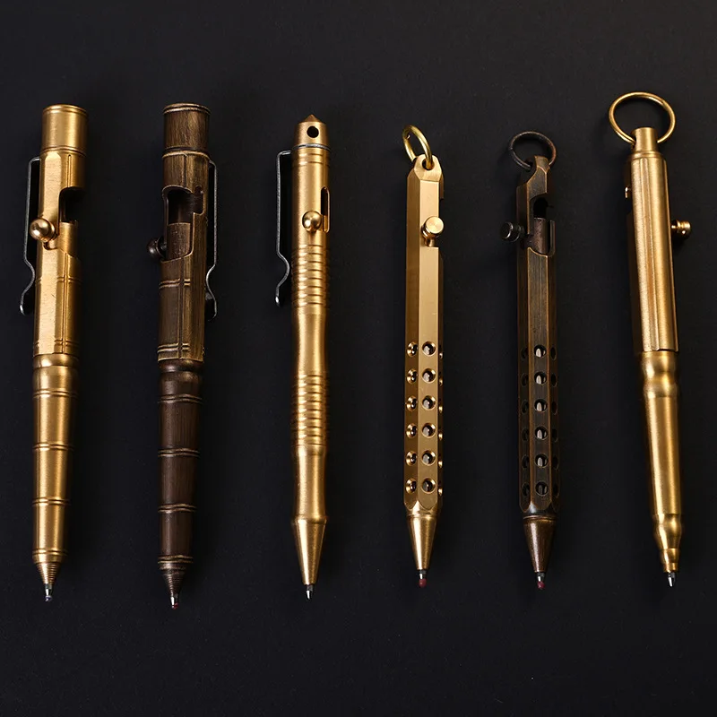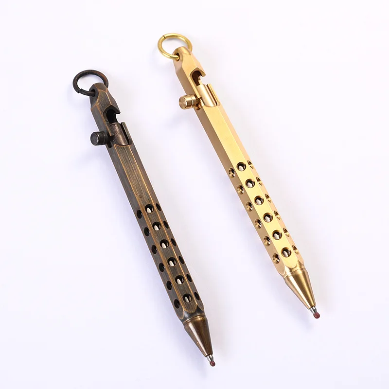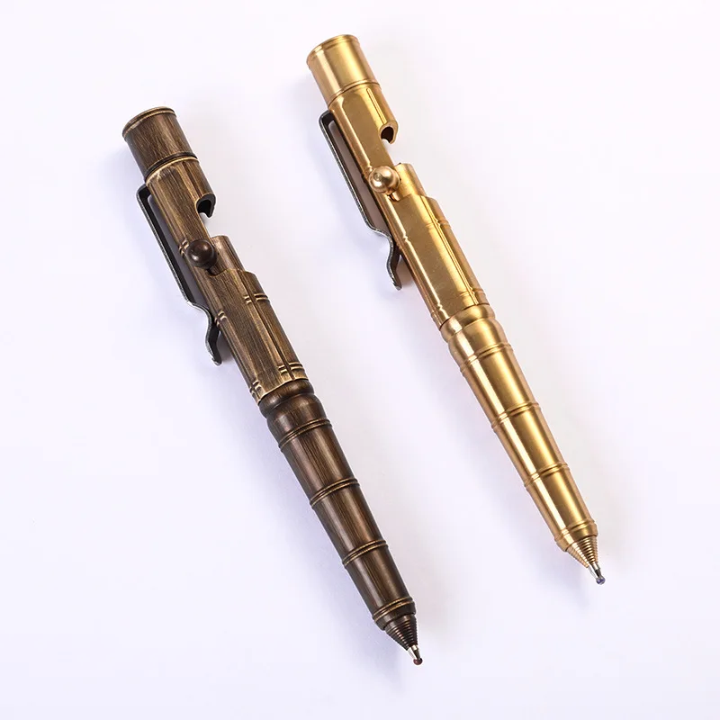 Высококачественная креативная Ретро латунная металлическая шариковая ручка с болтом тактическая ручка с медным кольцом в деловом стиле