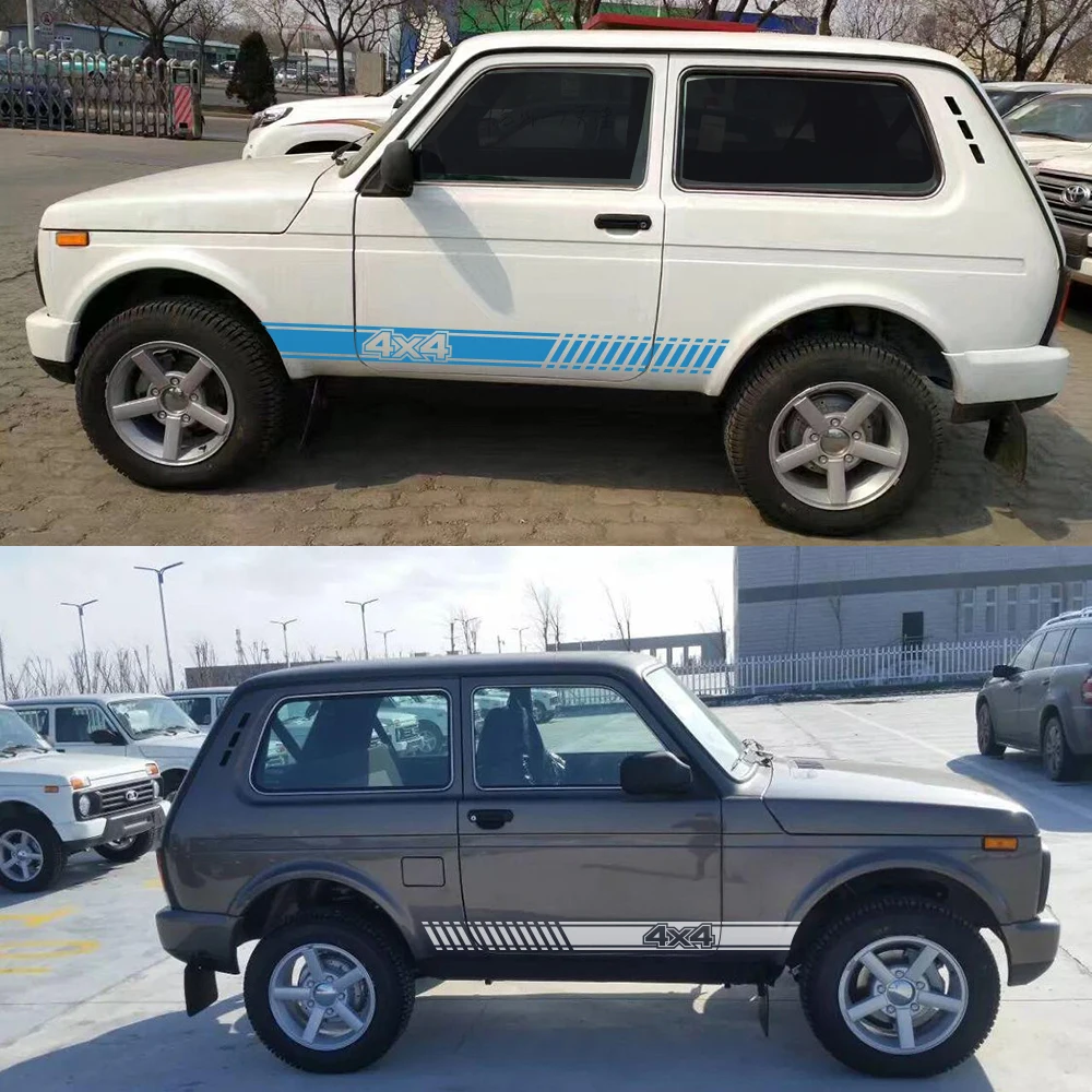 Наклейки для автомобиля сделай сам, 2 шт., длинные боковые полосы, наклейка, Виниловая пленка для LADA NIVA 4X, декорация для автомобилей, аксессуары для автотюнинга 2021
