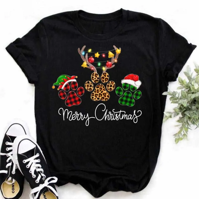 Женская футболка с принтом Собачья лапа, милые женские рождественск...