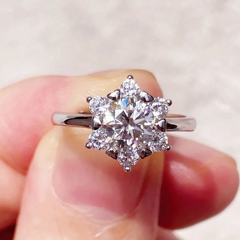 Распродажа, дизайн в виде снежинки, 1CT, кольцо из настоящего муасс...