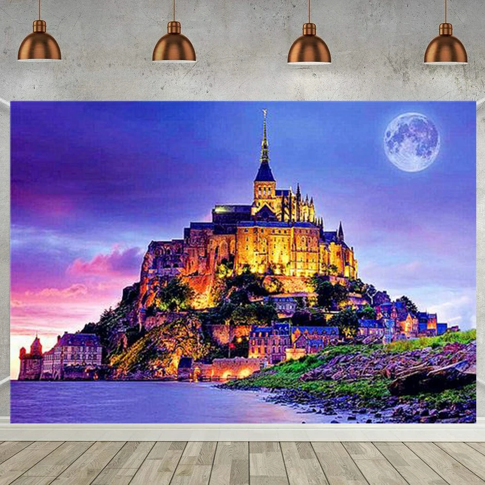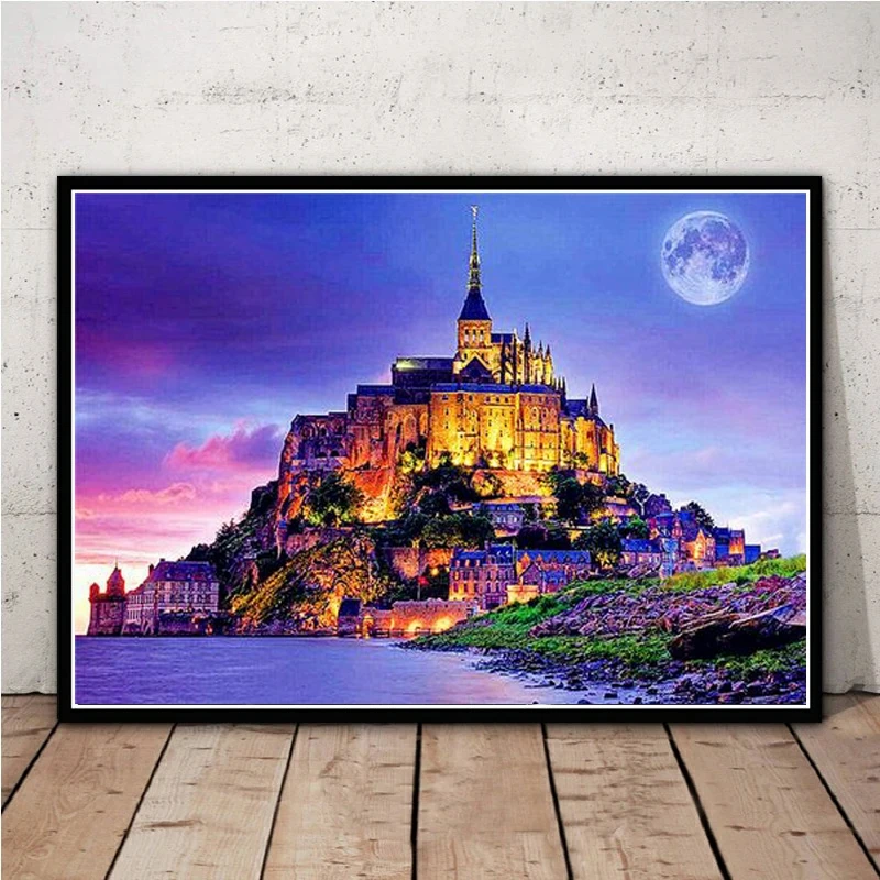 Алмазная живопись, фантазийный пейзаж, полноразмернаякруглая вышивк...