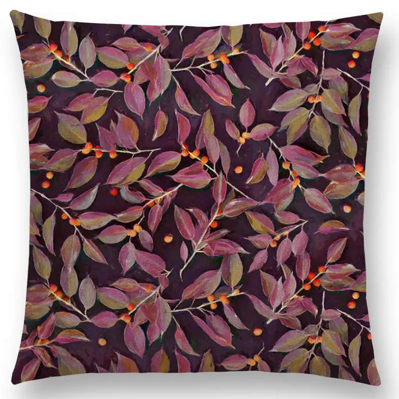 Разноцветные наволочки с рисунком растений и листьев, зеркальные на...