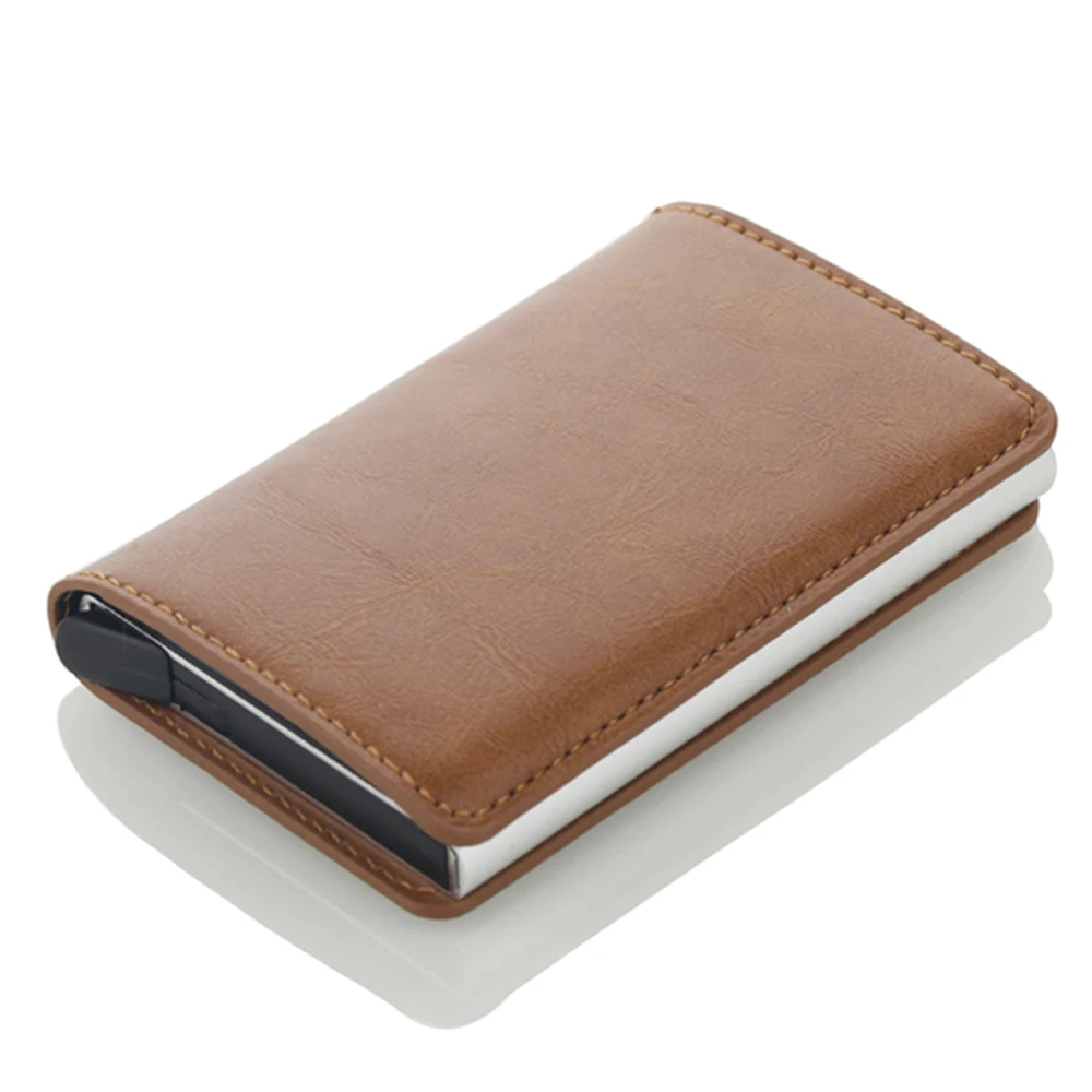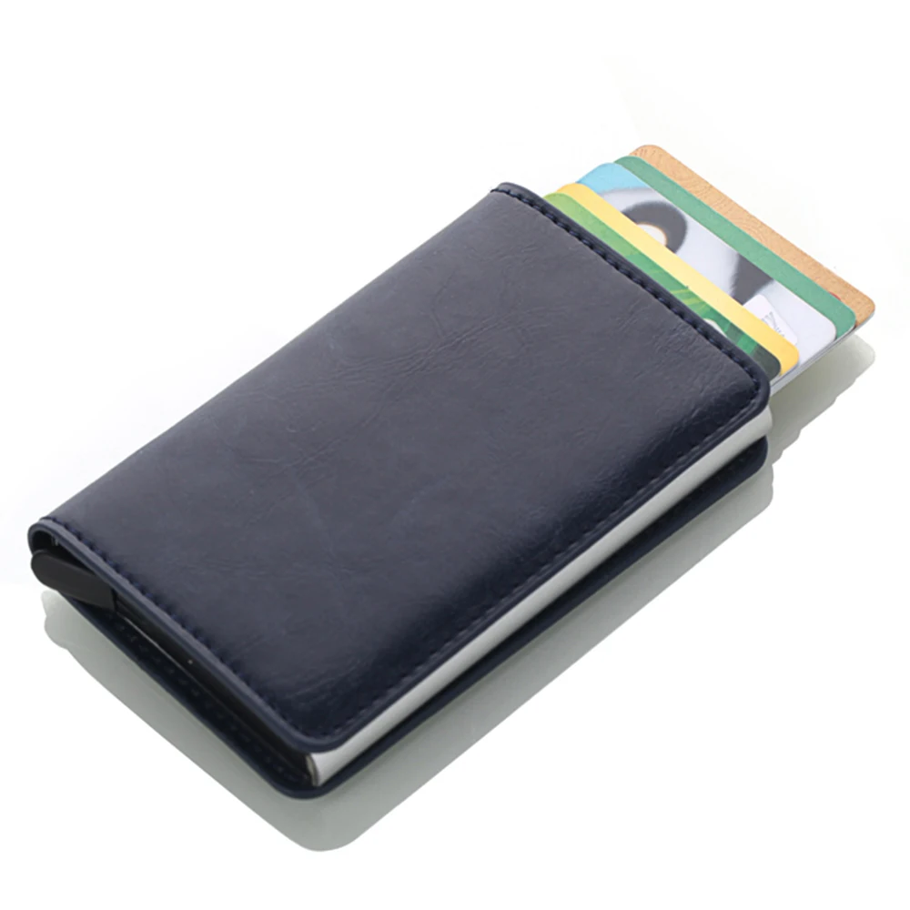 Кожаный держатель для кредитных карт для мужчин, алюминиевый автома...