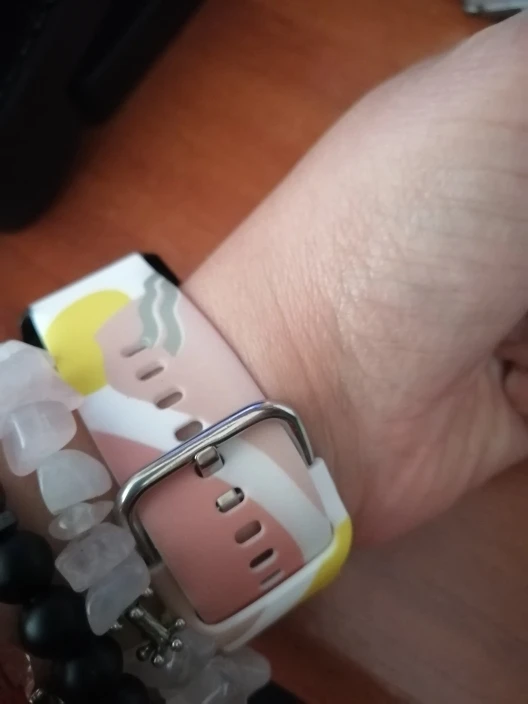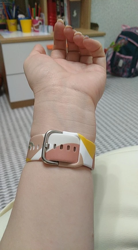 Очень доволен продуктом, как описано. Мне понравились цвета. Если бы мне пришлось поставить дефект, это было бы то, что материал не мягкий силикон, это более жесткий материал, который не так удобен, как другие ремни, которые у меня есть. Размер в порядке и идеально подходит к часам. Доставка была быстрой, я счастлив.