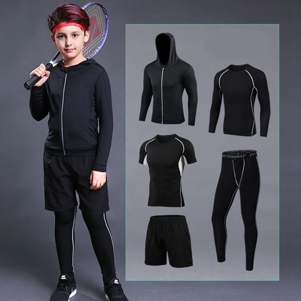 Компрессионная футболка для ММА + штаны 5 шт.компл. спортивный детский спортивный костюм для бокса Rashguard шорты для Муай Тай ММА спортивные трико для мальчиков