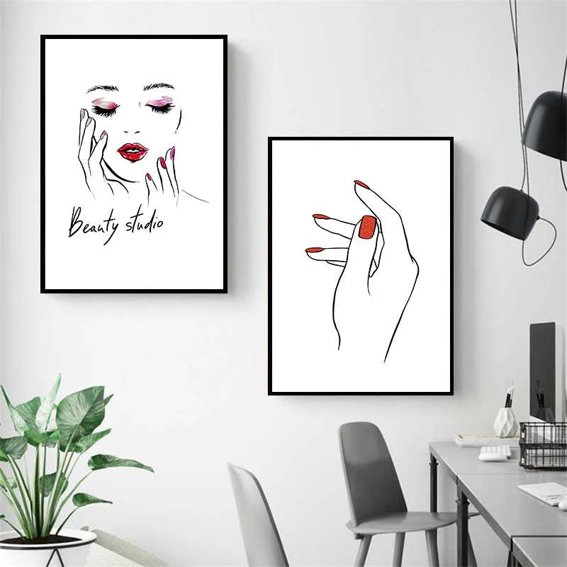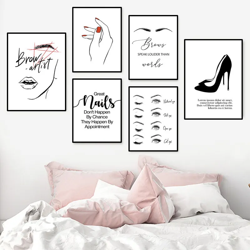 Брови ногти салон красоты макияж современное настенное Искусство Холст Картина в скандинавском стиле девушка обувь плакаты и принты Картина Декор HD3153
