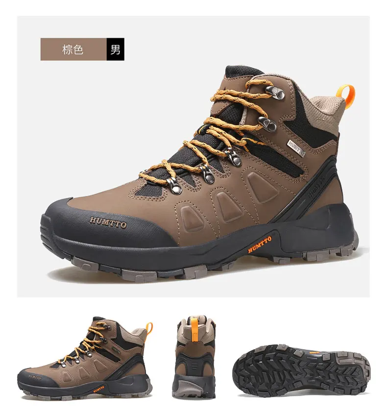 HUMTTOВодонепроницаемые зимние ботинки; Коричневые резиновые ботильоны для мужчин; Кожаная Рабочая безопасная обувь; Мужские Роскошные Дизайнерские кроссовки для пешего туризма
