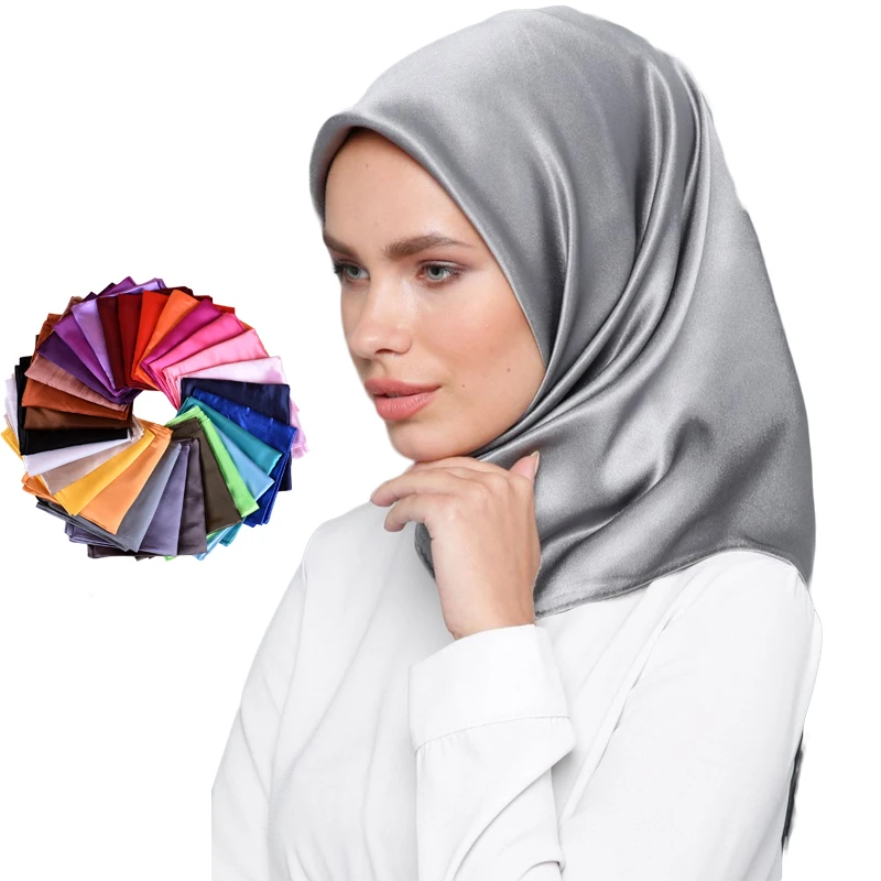 Однотонный шелковый шарф 90*90 см для женщин, платок, хиджаб, атлас...