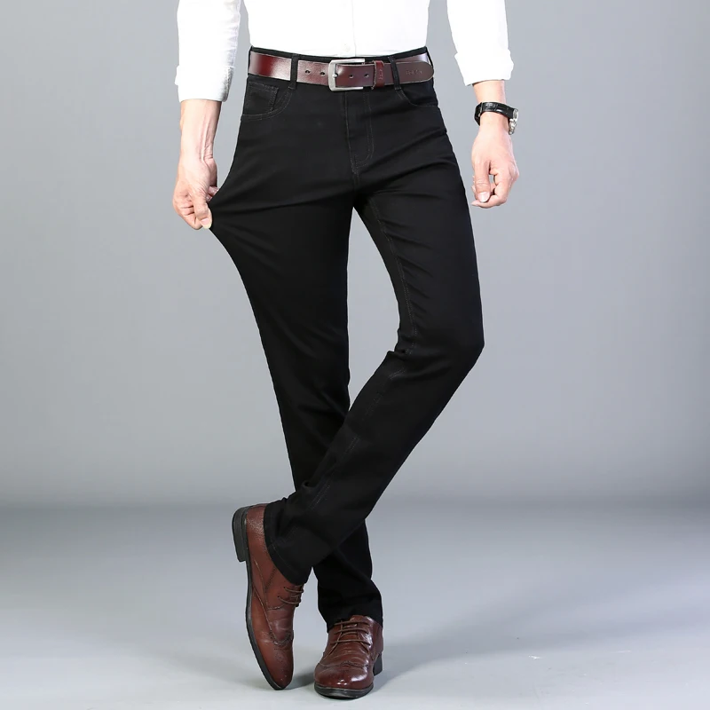 Классические Расширенные эластичные черные джинсы, новинка 2021, стильные деловые модные облегающие джинсовые брюки, мужские Брендовые джинсовые брюки