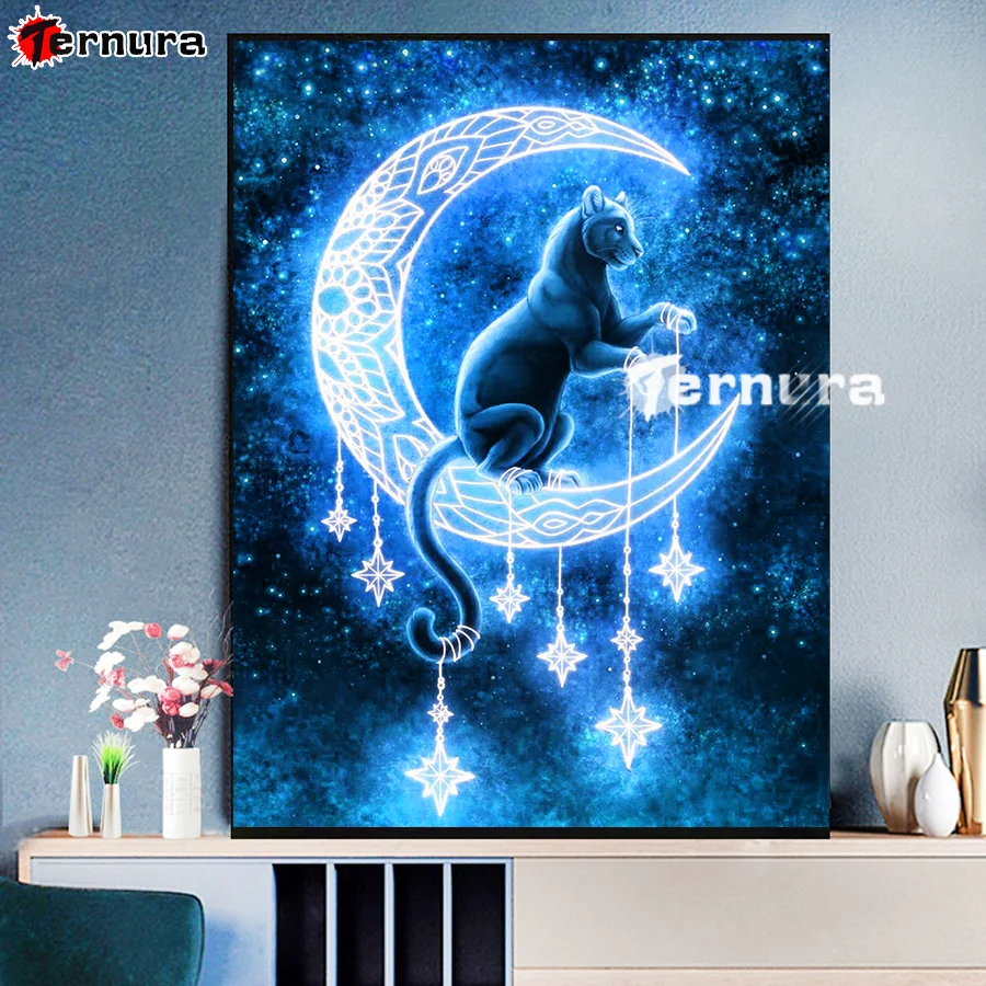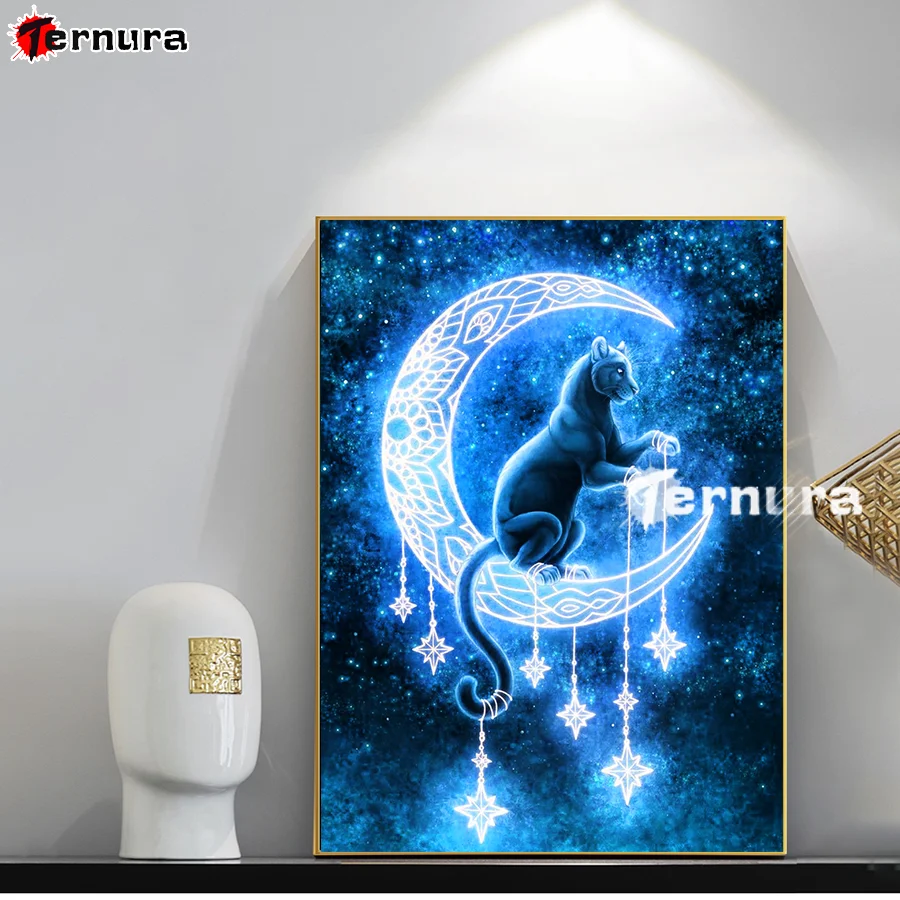 Алмазная Вышивка Черная пантера на кристальной Луне 5d алмазная картина домашний Настенный декор полный квадратный Круглый сверлильный мозаичный узор