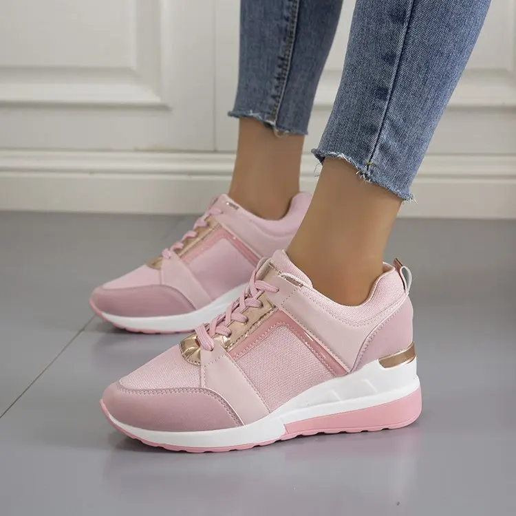 Женские кроссовки на толстой подошве, повседневная обувь на танкетке, дышащая Вулканизированная обувь, удобная спортивная обувь, кроссовки с высокой талией