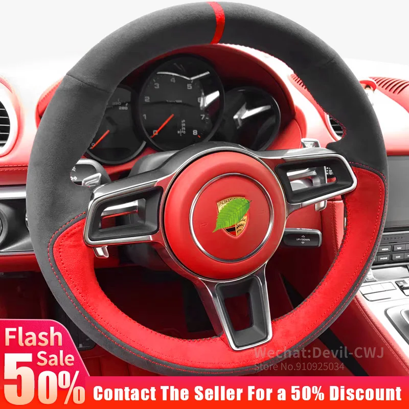 Реальный Алькантара Porsche красная крышка рулевого колеса для Pors...