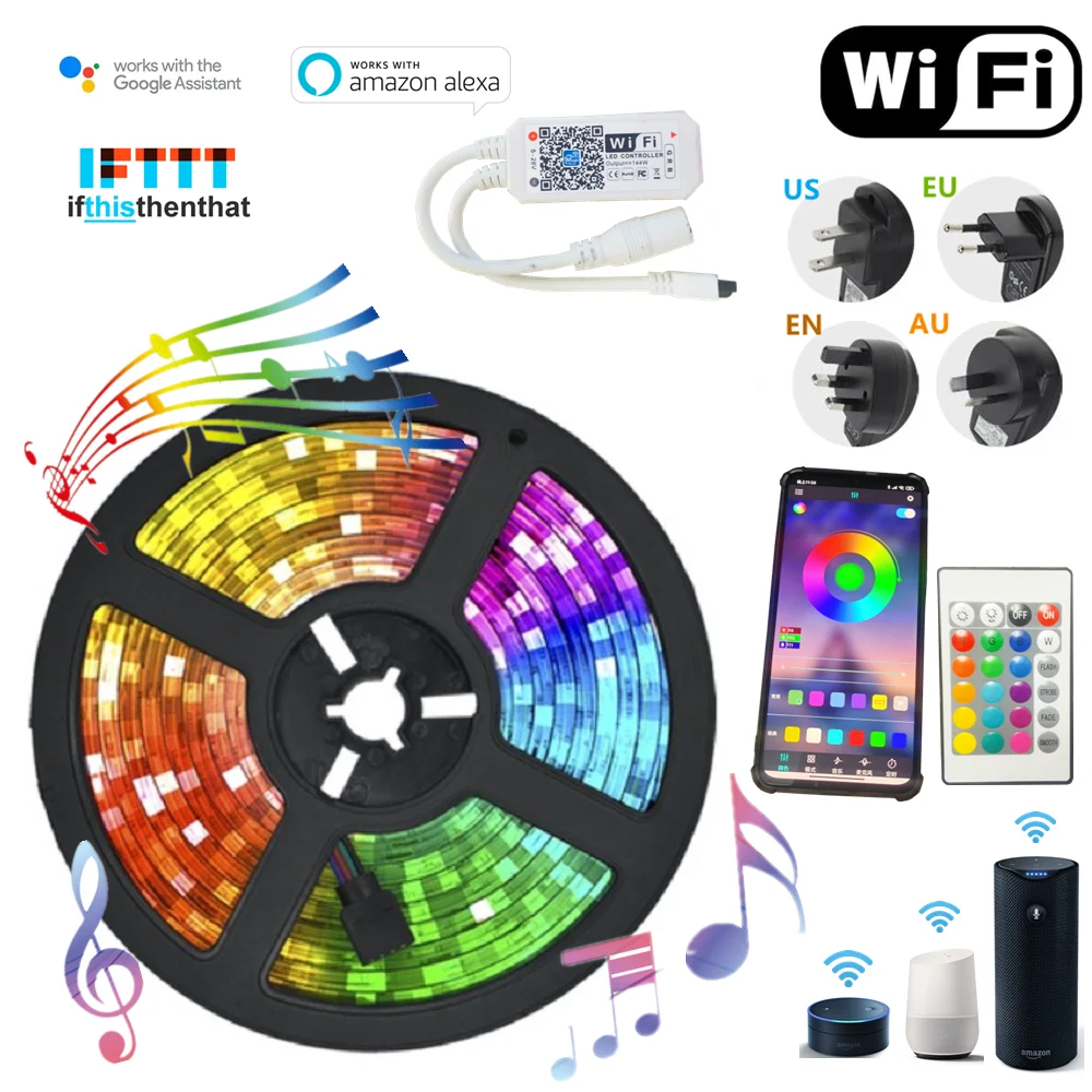 Светодиодная Водонепроницаемая ленсветильник 5050 SMD с поддержкой Bluetooth, Wi-Fi и адаптером, 30 м