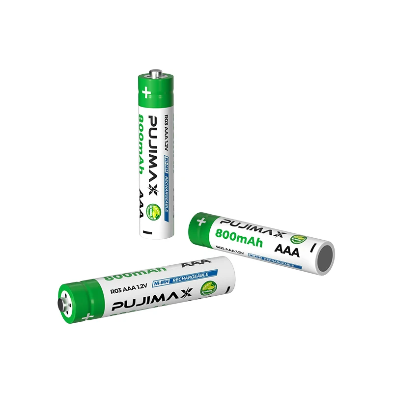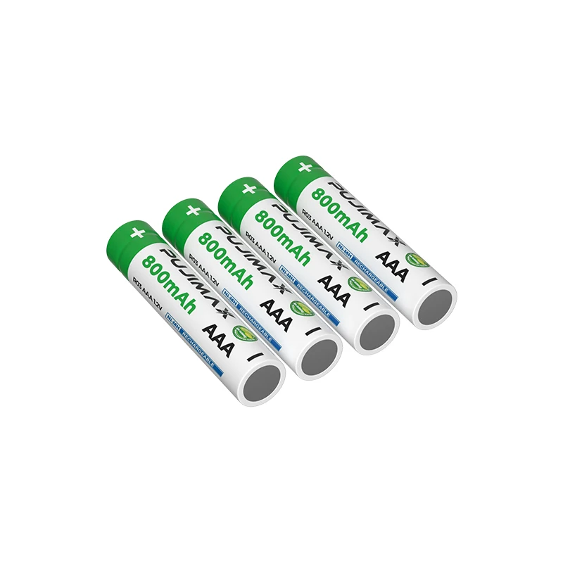 AAA Ni-MH аккумуляторная батареяНазвание бренда: PUJIMAXМодель аккумулятора: аккумулятор AAAЕмкость аккумулятора: 800 мАчВыход напряжение: 1,2 VСрок службы:>1200 цикловРабочая температура:-25C ~ 60 ℃Исполнительный стандарт: Q/PJDZ 002Посылка: 4 шт. AAA батареи с батарейным блоком