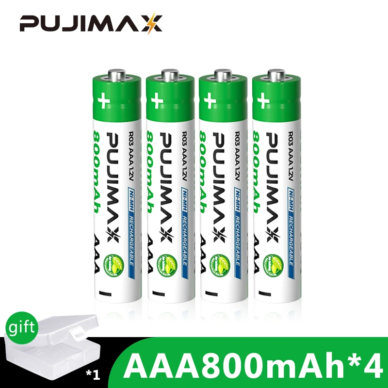 Перезаряжаемая батарея PUJIMAX AAA 4 шт. 1,2 в 800 мАч NiMH перезаряжаемые батареи для фонарика триммер для волос экологичный прочный