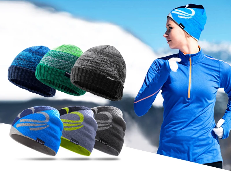 Зимние вязаные шапки AONIJIE, зимние ветрозащитные плотные теплые шапки для бега, занятий спортом на открытом воздухе, лыж и бега