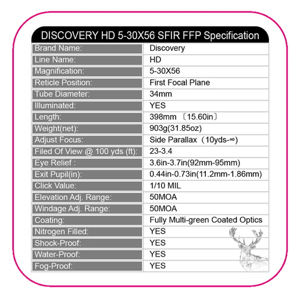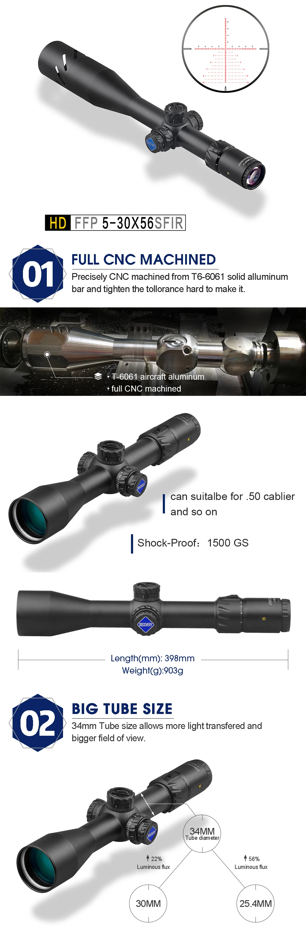 Discovery HD 5-30X56 SFIR дальность действия FFP первый фокусный самолет стрельба Охота прицел 34 мм трубка оптический коллиматор прицел
