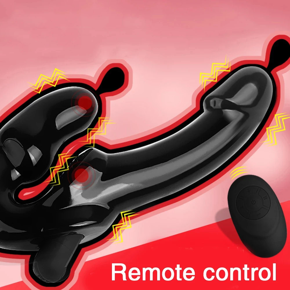 Вибратор-фаллоимитатор без бретелек для пар, Страпон для пар, беспроводной пульт дистанционного управления, двухголовый вибратор, секс-игрушки для взрослых