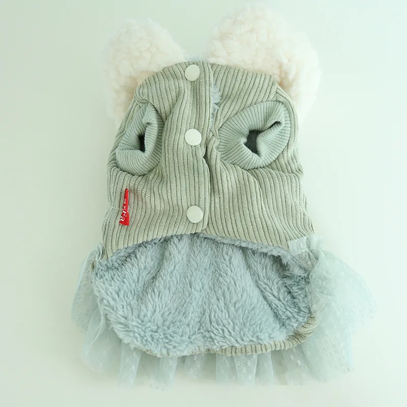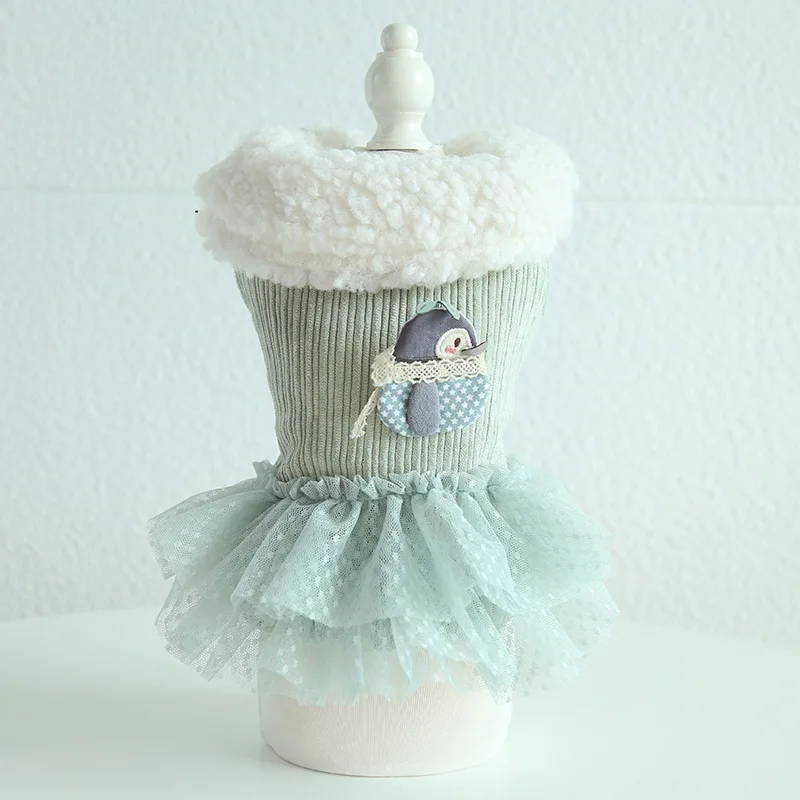 Одежда для кошек, зеленое платье с пингвином, кружевное пальто для собак, теплая одежда с хлопковой подкладкой для собак, щенков, кошек, домашних животных, одежда для чихуахуа