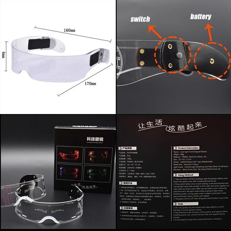 Светодиодные светящисветодиодный очки для косплея, футуристические ...