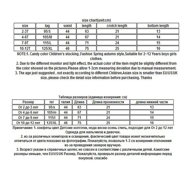 Примечание: 1. Детские чулки ярких цветов; Модный весенне-осенний стиль; Подходит для От 2 до 12 лет мальчиков и девочек.