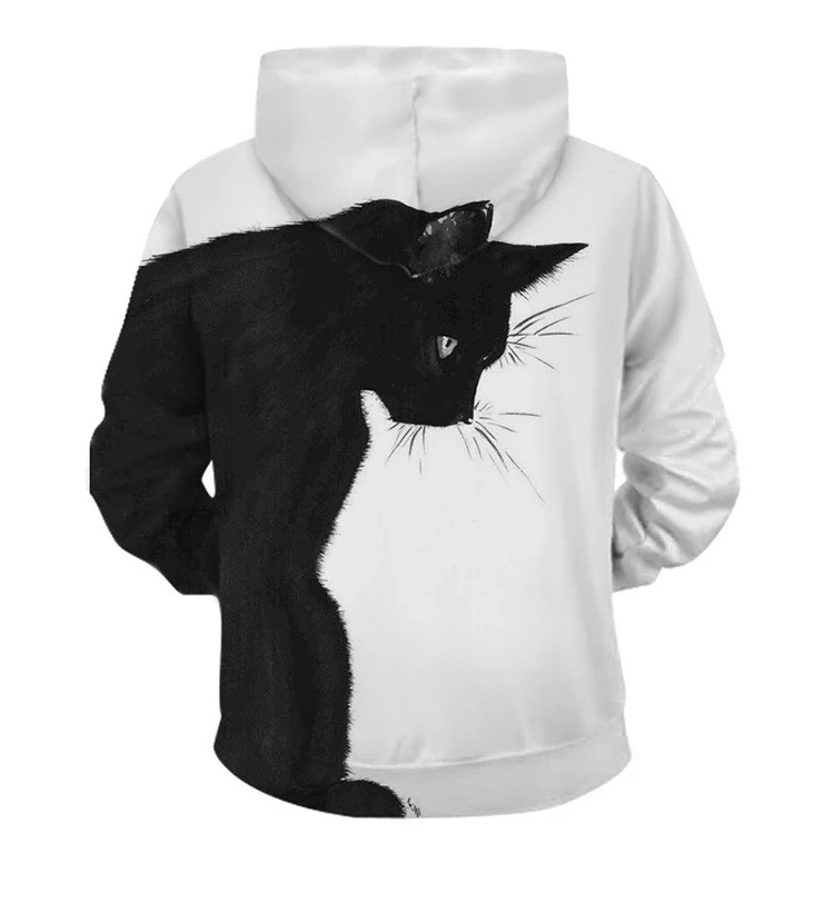 Новинка 2021, черно-белая толстовка с 3D котом, свитшоты, пуловер д...