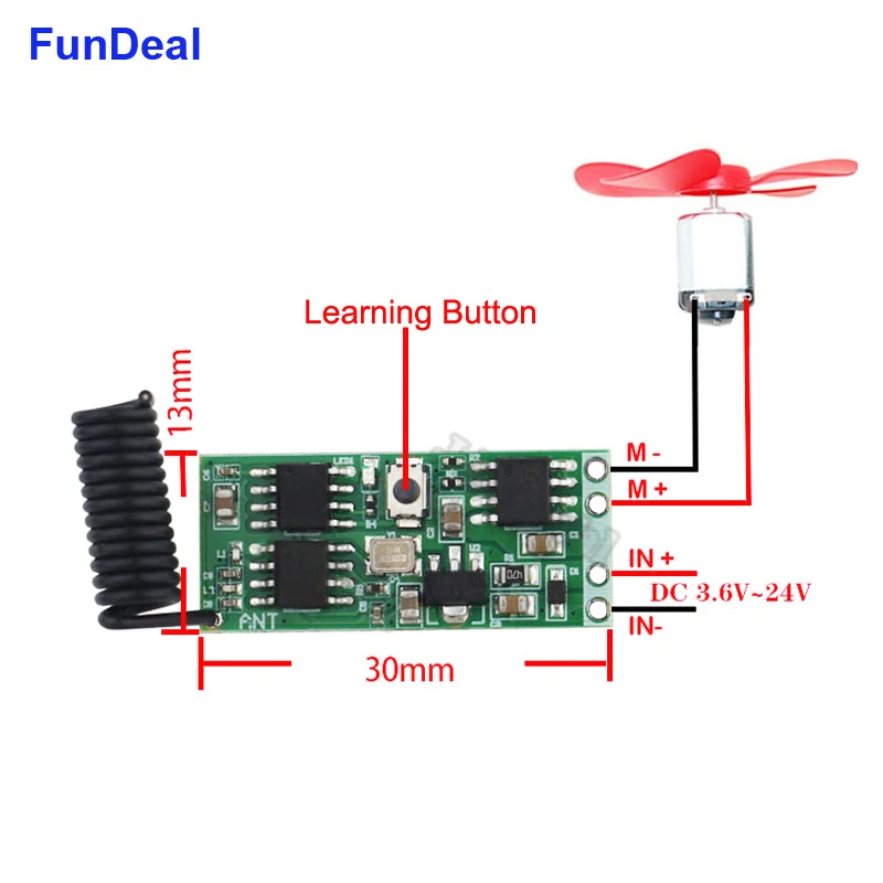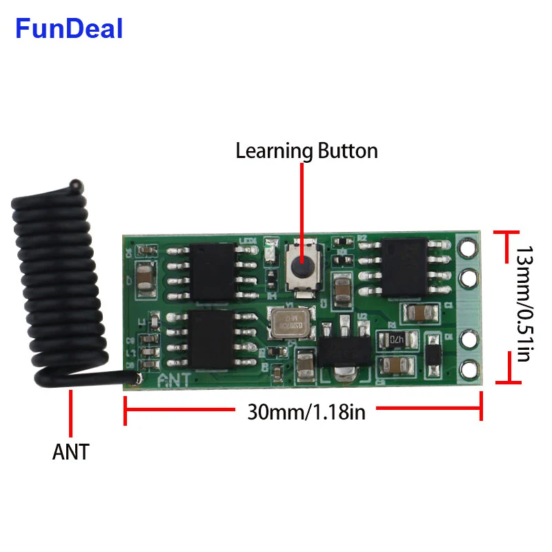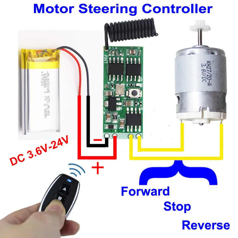 Особенности:Беспроводные игрушки с дистанционным управлением, электрические шторы, замки с электрическим управлением. · Большое рабочее напряжение. · Ультра низкая мощность, высокая чувствительность. Кодирование: EV1527 1527 код обучения433 МГц Универсальный беспроводной переключатель с дистанционным управлением DC12V двигатель с передним задним рулем модуль ler Электрический замок управления DIY